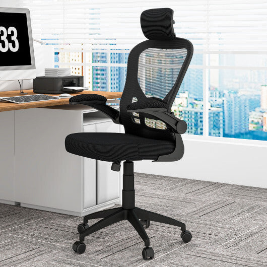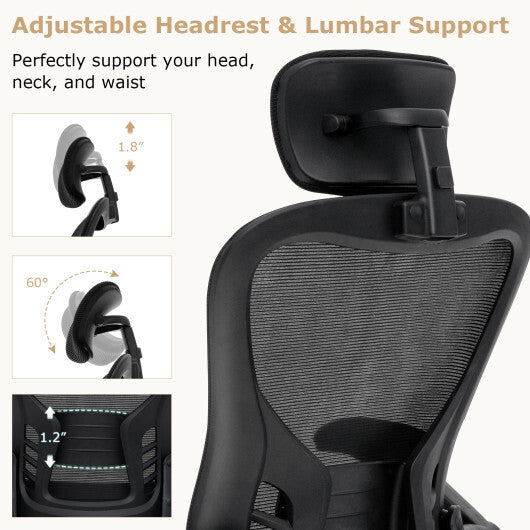 Ergonomic Mesh Office Chair with Adjustable Height for Home Office-Black - Color: Black