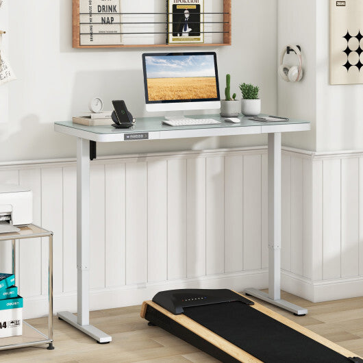 48-Inch Height Adjustable Electric Standing Desk with Drawer-White - Color: White